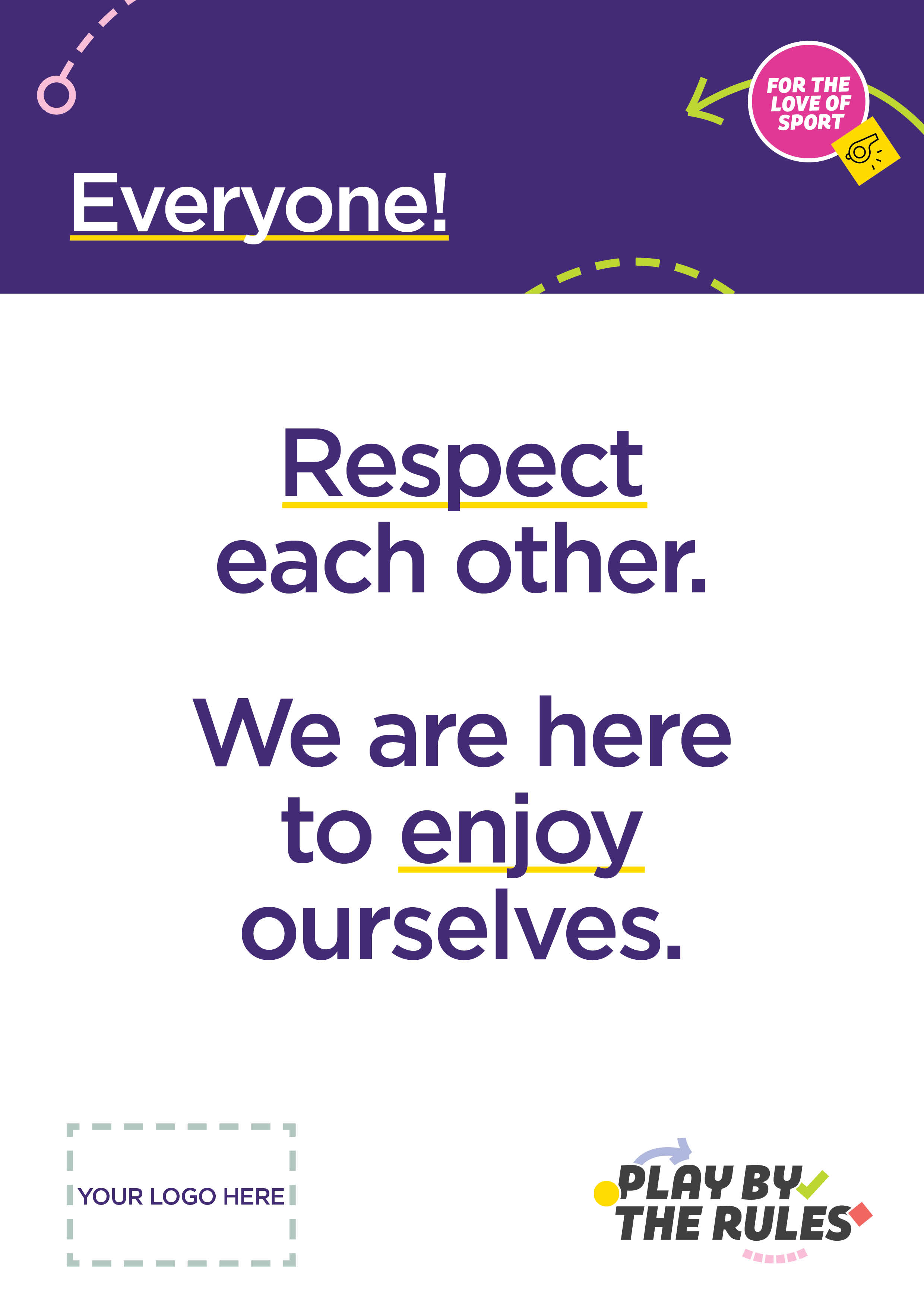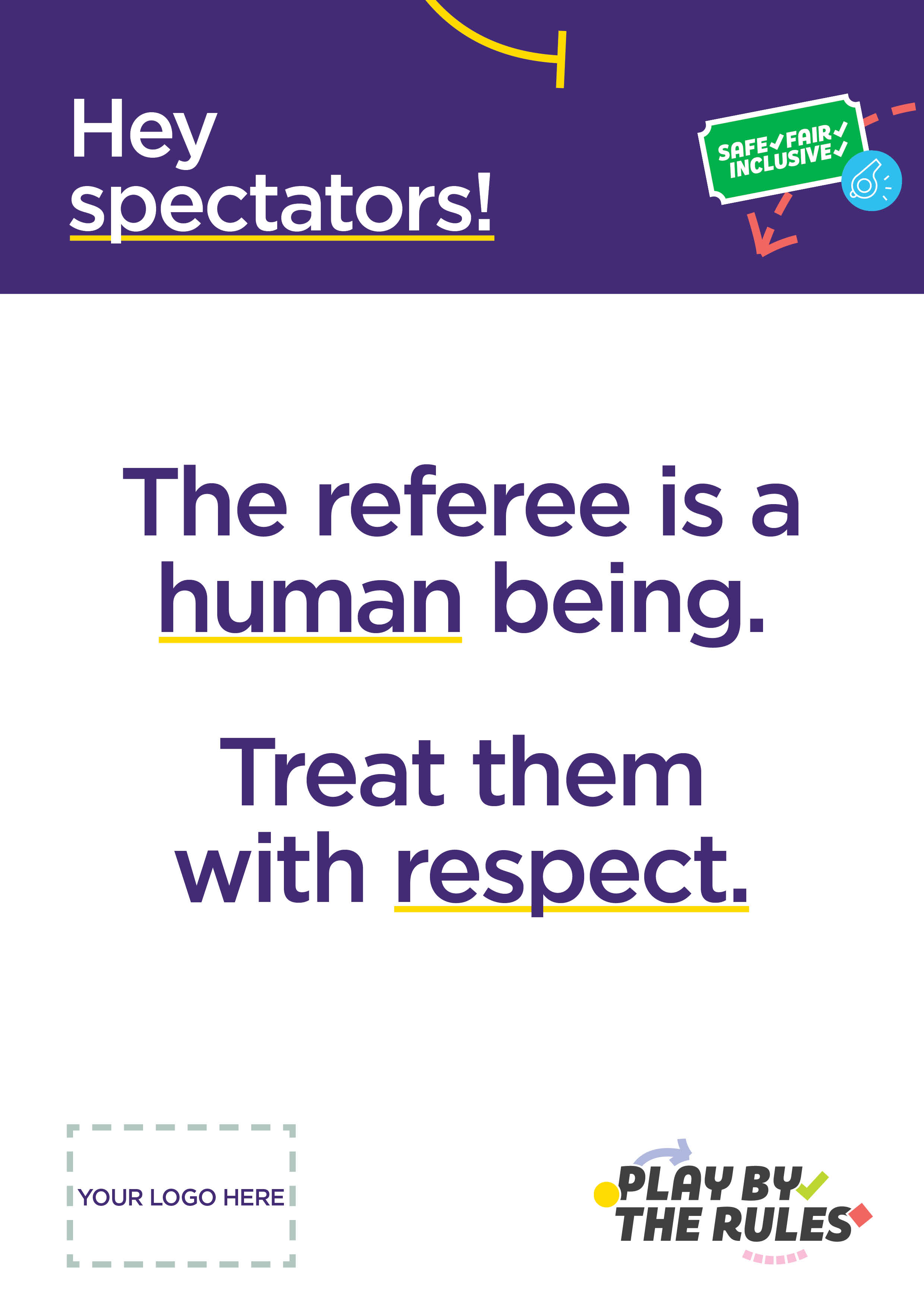 The following three editable posters can be used to promote positive sideline behaviour at your club or association. Add your logo and print them in A2 for full effect! If you have any questions please contact us. Links Download version 1 Download version 2 Download version 3